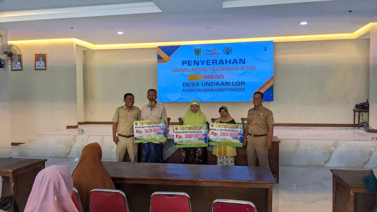 Undaan Lor – Pemerintah Desa Undaan Lor, Kecamatan Undaan, Kabupaten Kudus, kembali merealisasikan program Bantuan Langsung Tunai Dana Desa (BLT DD) Tahun 2025. Kegiatan penyaluran bantuan ini berlangsung pada Senin, 1 Desember 2025, bertempat di Gedung Serbaguna Desa Undaan Lor, dengan dihadiri oleh perangkat desa, pendamping desa, serta para warga penerima manfaat.